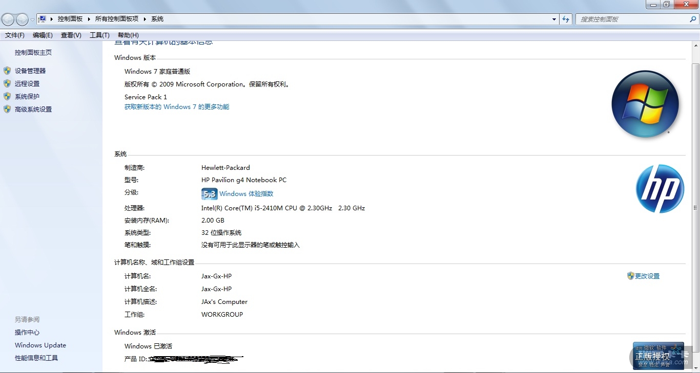 请楼主鼠标右键点击我的电脑——属性,将截图发来看看,