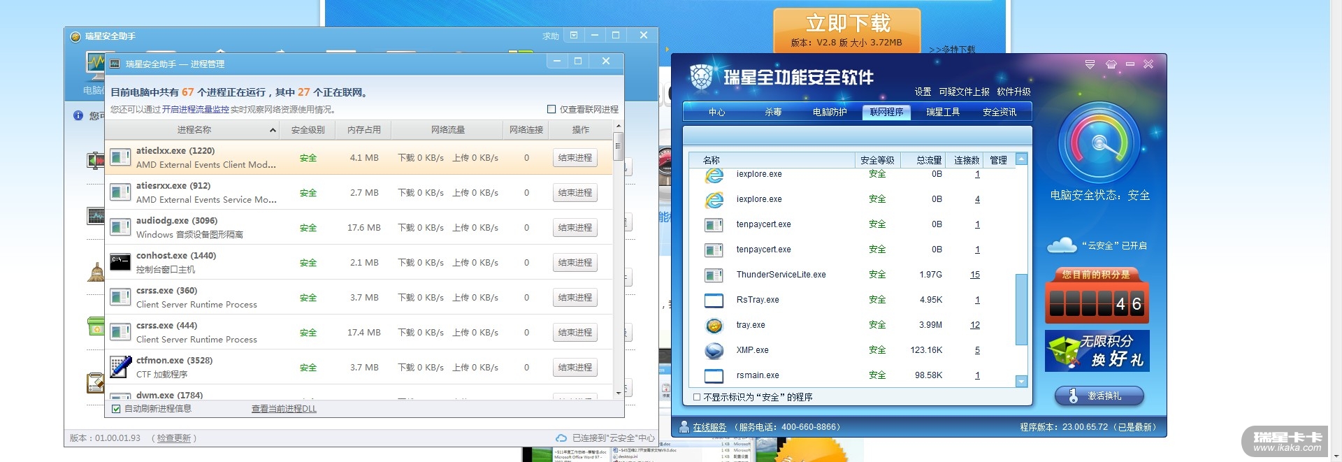结合现在瑞星的情况,觉得安全助手里的“进程管理”和瑞星2011版里的“联网程序”有点功能重复,因为功能都一样,没有必要重复使用它,现在不是讲究个资源整合嘛!望贵公司的相关工作人员慎重考虑我的建议。