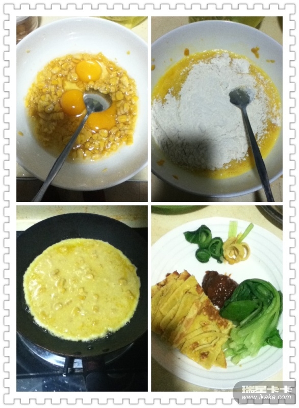 考虑到食品安全问题,最近经常在家里做小零食,鸡蛋玉米饼。鸡蛋,玉米面,菠菜,看上去颜色不错,做起来也很简单,只要动手,很简单。最主要的是,营养也很丰富哦。用户系统信息:Mozilla/5.0 (Windows NT 5.1) AppleWebKit/535.1 (KHTML, like Gecko) Chrome/14.0.802.30 Safari/535.1 SE 2.X MetaSr 1.0