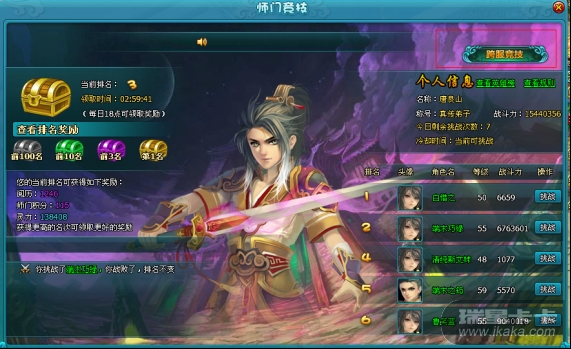 4, 如果在结算日玩家在本服师门排名跌出前5名以外,则会失去跨服竞技参赛资格,以前所取得的名次也会一并清空。