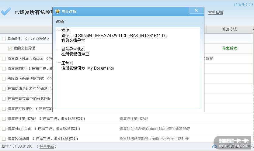 安全助手查出 桌面快捷方式异常、txt并联异常,弄完了复现,也没解决不能登录瑞星网站,HOSTS文件看着正常!