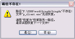 2、当要还原的原文件路径已经不存在时,会弹出以下提示框(如图 3),选择[是],可以指定路径: