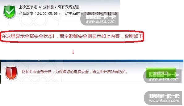 电脑防护有安全状态提示啊,关闭监控或主防都会有防护未开启的提示。
