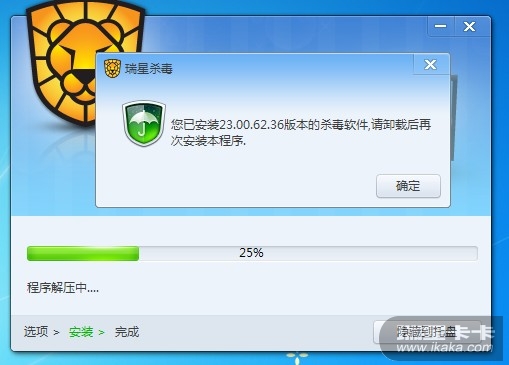 查找HKEY_LOCAL_MACHINE\SOFTWARE\rising\RAV看是否有这项,如果有,将其手动删除,再安装试试