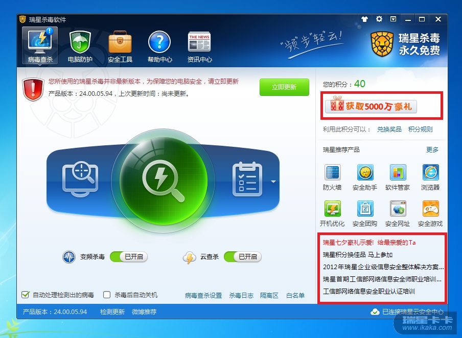 试了一下数字4.0的界面,做的挺好,简洁多了,没有一点多余的东西。星星怎么就不能借鉴一下,去掉那些与杀毒没有直接关系的东西呢