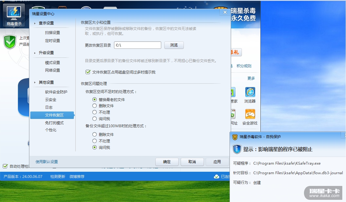 当然了,你把他改成C:盘,那么C盘下的所有文件、子文件夹都成了瑞星的保护对象,所以……:kaka6: