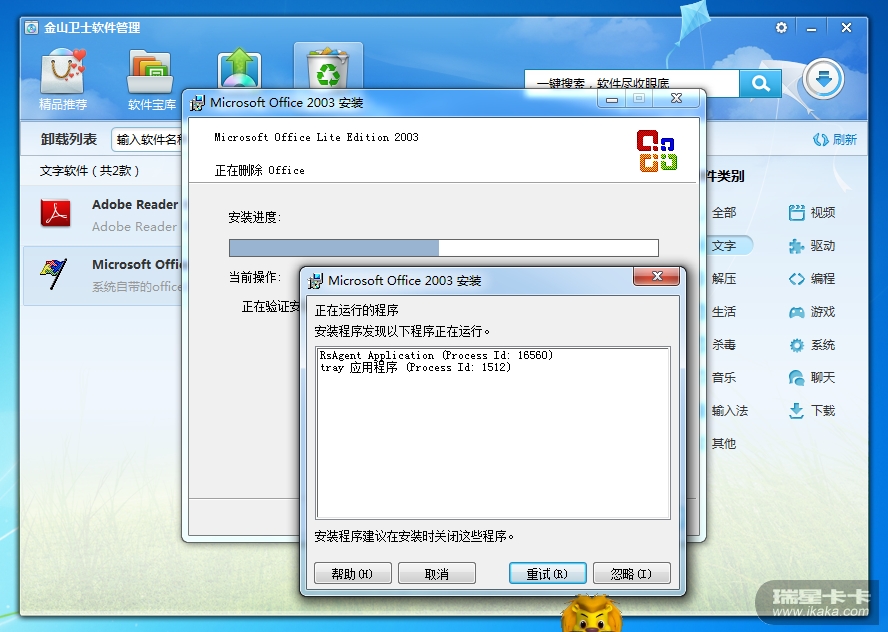 请lz提供office2003 lite edition下载地址,另请提供操作系统类型及瑞星杀毒软件版本。