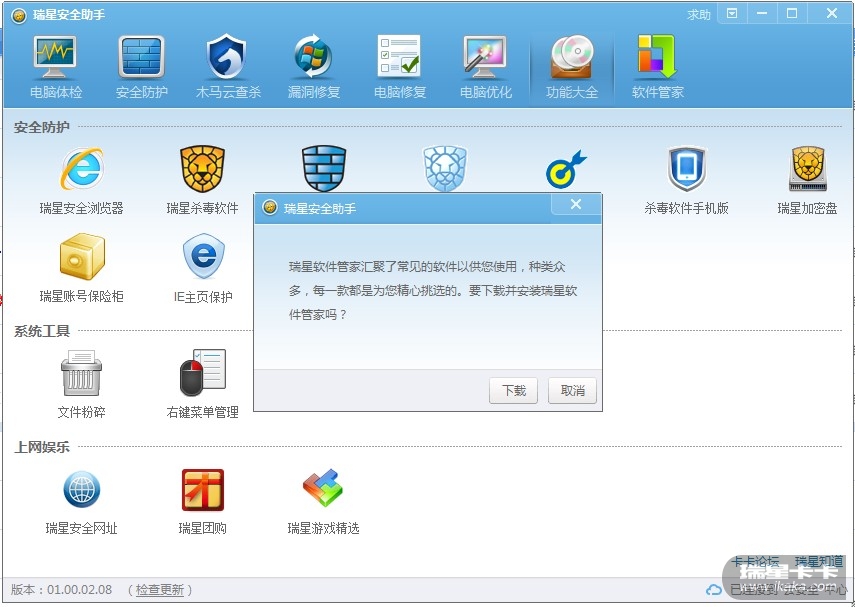 在试用瑞星安全助手的时候,发现了一处类似于BUG的地方。到底是用什么方式下载?(如图所示)