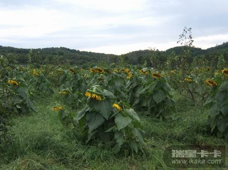 除了马鞭花,这庄园还有几个小亮点,首先是看门人养的小狗,乖得很,小心一点还可以摸摸它。为了对客人表示欢迎,小家伙的尾巴一直摇啊摇的。主人很得意的告诉我们,来的客人都非常喜欢这小狗。亮点之二,进了庄园大门后的一片树林,齐膝的林中草地,遍布各式各样怒放的野花格桑花,有点小森林的感觉。亮点之三,饭菜质量还算过关。虽是农家饭,活水养的虹鳟鱼,肉龙,都做得还可以,适合口味不挑剔的游客。9月初,这里的向日葵已经枯萎,向日葵地成了空地一片,看不到满眼金黄的景象了,小遗憾。庄园里还有一小片水域,有点像弯月,应了月牙湾的名,可以垂钓划船。