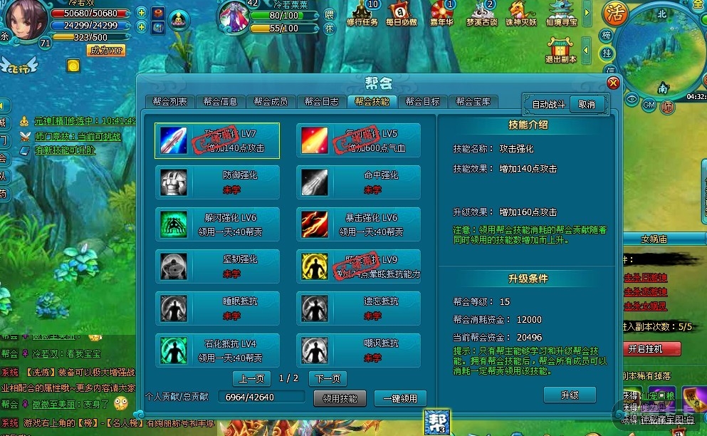 我还没领取技能 但是显示已经领了帮会技能 好囧啊!