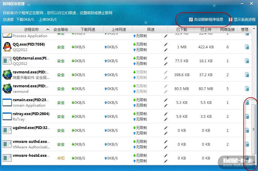 把滑动条一直拉到最下边,当开启“自动刷新时”,滑动条总是会自动网上缩一个条目,