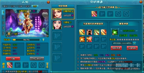5.相应属性的精灵守护只能学习对应属性的攻击神通和护宠神通。比如金属性的精灵守护剑舞倾城只能学习金系攻击神通和金系护宠神通。