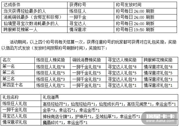 温馨提示:礼包及奖励物品均为绑定,以信函方式发放。