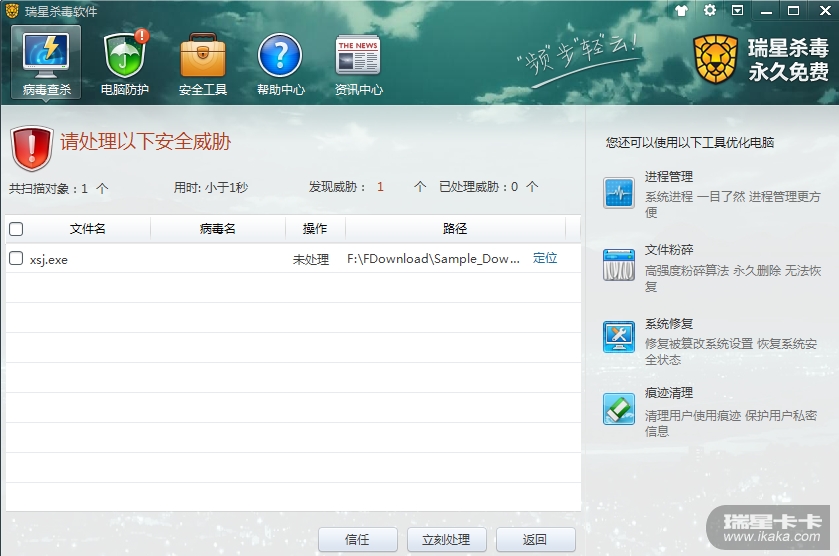 右键选择使用瑞星杀毒,也是xsj.exe 这个样本吗?