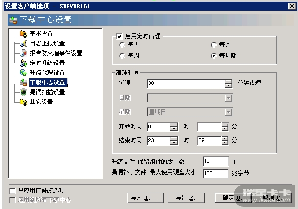 开始——程序——瑞星杀毒软件网络版——瑞星工具——下载中心管理工具,点击“文件”“设置”,完成更改。