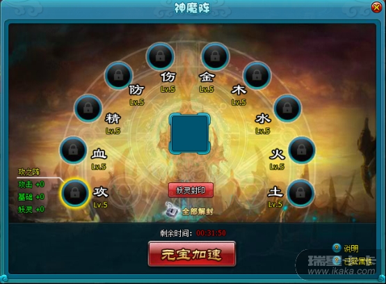 神魔阵对应阵眼等级达到1级或1级以上时,便可以封印妖灵。