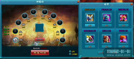 被封印的妖灵头像会显示在对应的阵眼之中,同时获得对应阵眼的属性。玩家可以自由封印与解封,被封印的妖灵也可在妖灵居中进行喂养与法宝升级操作。