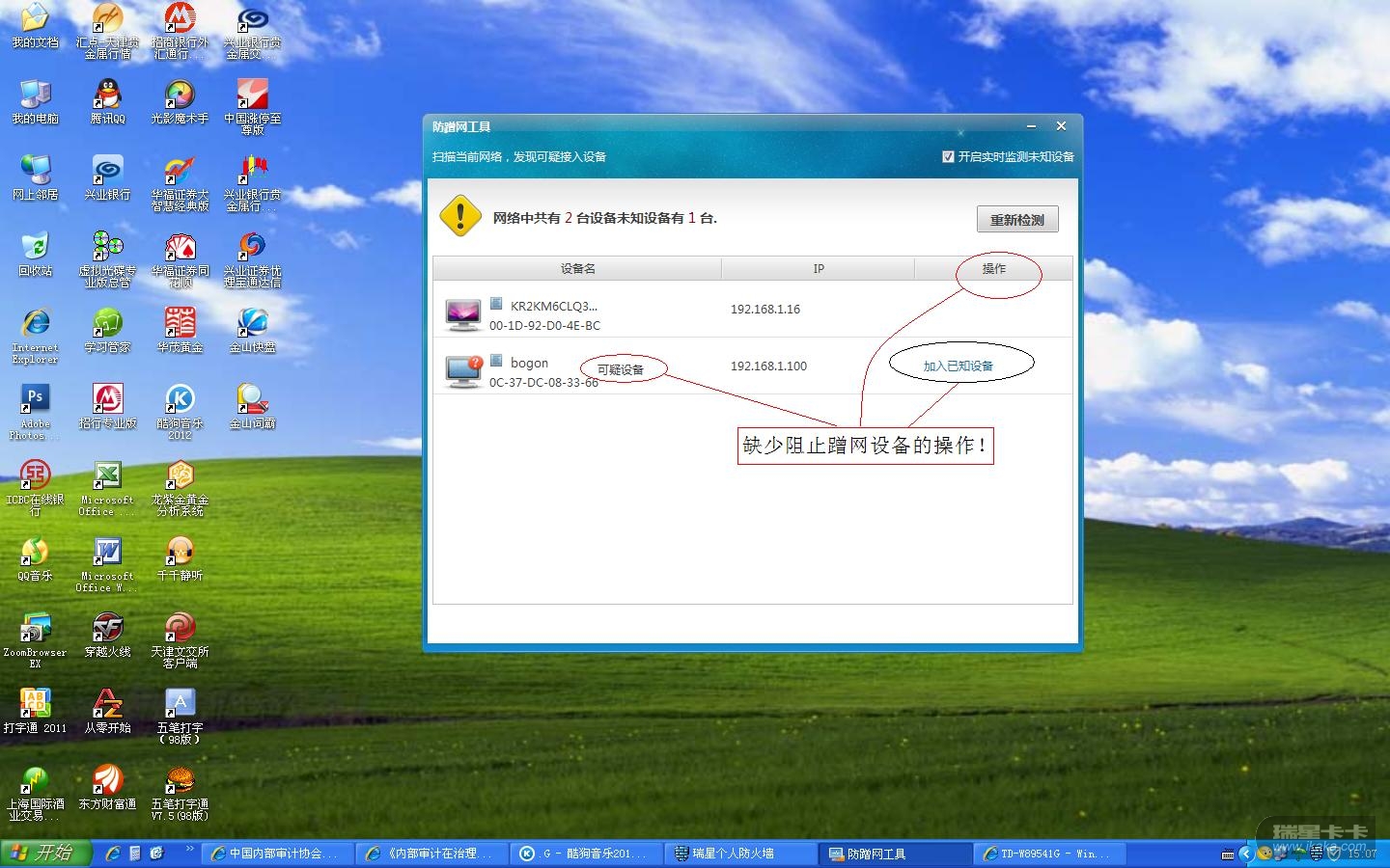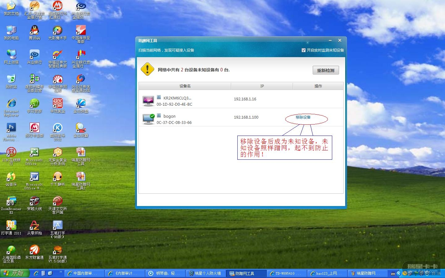 2012瑞星防火墙的防蹭网工具无法起到防蹭网的作用?