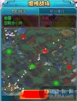 战场玩法1、玩家进入战场将随机分配加入两方阵营,分别为极昼之晖、永夜之暗;左下角绿色点为极昼,右上角红色点为永夜。