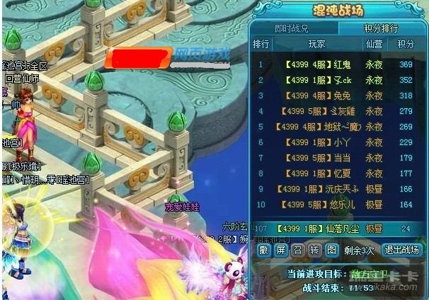 5、在右边的战场界面,可以看到目前的积分排行,击杀玩家和击杀BOSS都可以获得积分。
