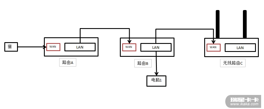 猫和路由A是固定不动,要接二台电脑(有线),一台笔记本(无线)。