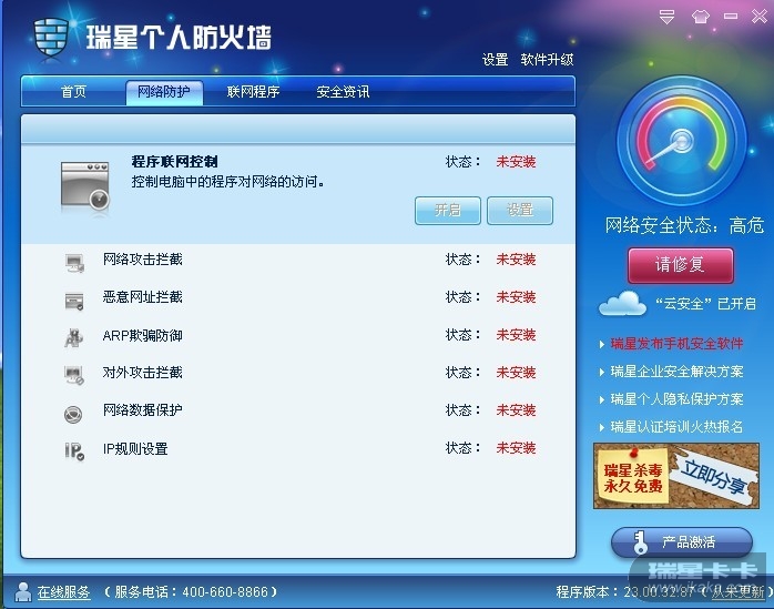还有,覆盖安装之后,在开始-所有程序的-瑞星个人防火墙下出现多个修复、安装包制作、监控中心等菜单,但点击修复均没有反应,没有相应菜单弹出!!!