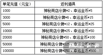 玩家若在【商城】、【仙境寻宝】、【神秘商店】及【天官赐福】消费满100000元宝,即可获得以上消费额度的所有奖励。温馨提示:以上奖励均为绑定物品,奖励在活动面板进行领取。四、 商城抢购,惊喜多多活动时间:2012