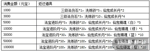 年11月21日08:00至11月23日23:59活动范围:全服活动规则:活动期间,玩家通过【商城】、【仙境寻宝】、【神秘商店】及【天官赐福】消费至指定额度,可获得额外的奖励。