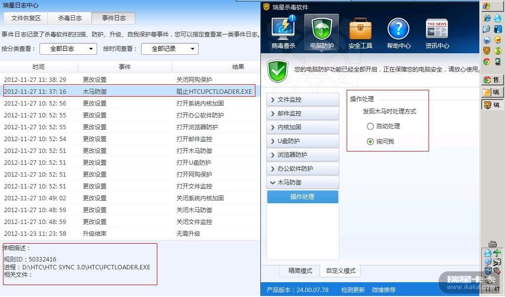 根据设置,木马防御不应该自动拦截的,而应该弹窗提示我选择操作