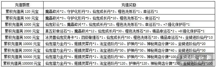 年11月28日08:00至11月30日23:59活动范围:全服活动规则:活动期间,玩家累积消费至指定额度,可获得额外的奖励。消费包括商城、神秘商店、仙境寻宝、天官赐福、翅膀技能刷新、守护神通刷新、召唤妖灵、元神加速修炼、仙宠猎魔、仙园加速元宝消耗。