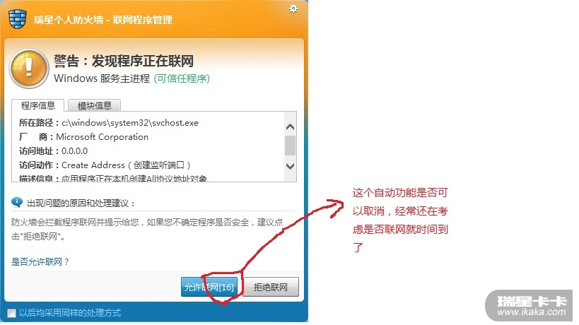 例如公司网管要连入我的桌面时。我就能及时知道,不知瑞星防火墙是不是已经有了这个功能