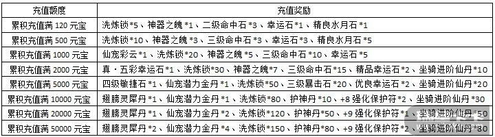 温馨提示:单笔充值奖励可重复领取,不设上限,奖励物品均为绑定,以信函方式发放。