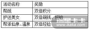 活动期间,玩家相应的活动可获得相应的双倍奖励。