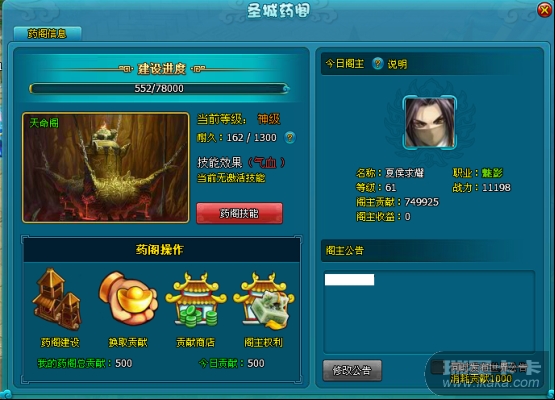 (4)阁主还可修改药阁名称。发布药阁公告。