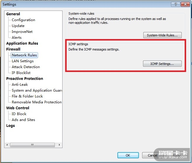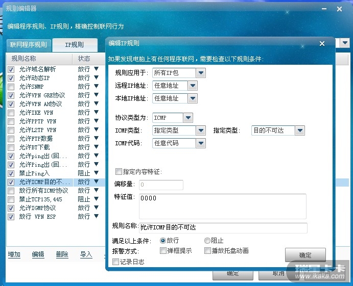 3. 将ICMP协议过滤单独从IP协议过滤里边拿出来,单独设置成一个单独的“ICMP过滤规则”,便于使用。(这点上,可以参考outpost防火墙和火绒盾)加不加关系不大,请酌情考虑吧。