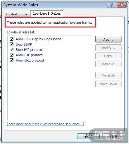 2. 将IP规则分为应用于应用程序规则前,和应用于应用程序之后两种。加不加关系不大,请酌情考虑吧。