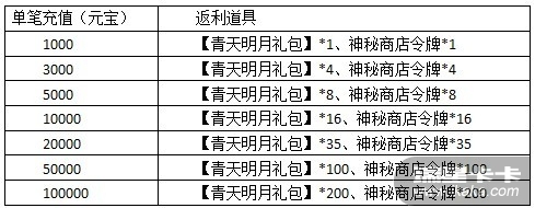 温馨提示:单笔充值奖励可重复领取,不设上限,奖励物品均为绑定,以信函方式发放。