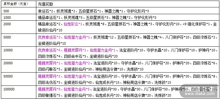 温馨提示:不同充值额度奖励可累积获得,奖励以信函方式发放,均为绑定。