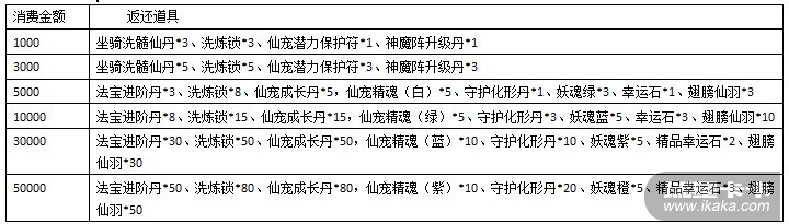 玩家若在指定系统消费满50000元宝,即可获得以上消费额度的所有奖励。