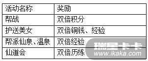 活动期间,玩家相应的活动可获得相应的双倍奖励。