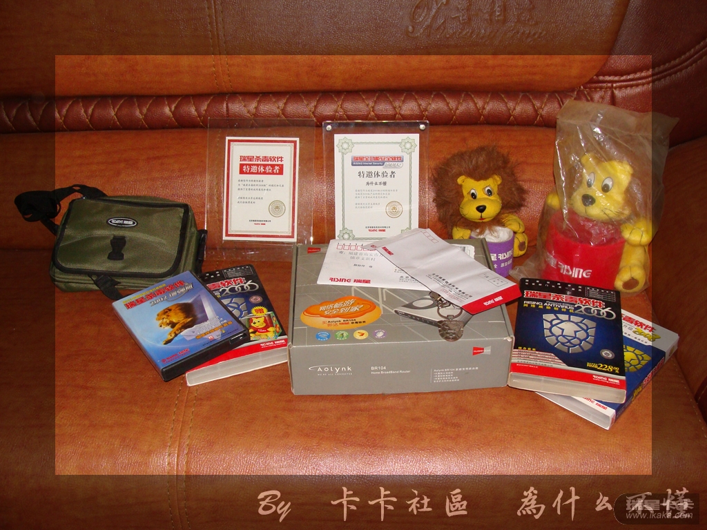 作为瑞星的特邀体验者,让我陆陆续续收到了一些礼物,如路由器,虽然现在退居二线换无线路由了,但上次无线路由罢工的时候还是出了一份力的,数个布偶,有些送人了,还送了好几套杀软,背包,钢制钥匙扣啥的,可惜到后面杀软都点香供起来了,没用。