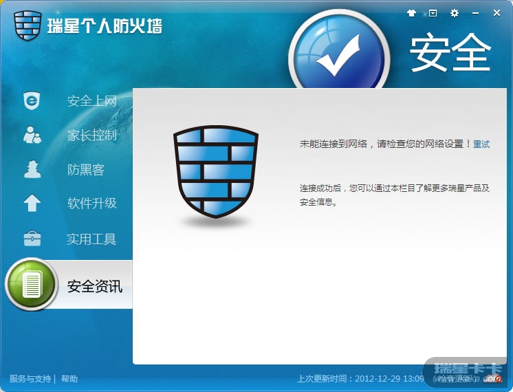然后我开了瑞星防火墙,发现“安全资讯”这块无法连接网络,杀毒软件的“资讯中心”也是一样的,其他的联网一切都正常,似乎没有感染病毒,升级是正常的,想咨询一下是电脑问题还是其他问题?我用的是联想笔记本电脑,电信10M光纤,就是上周末开始出现这种状况的,几个东西同时连不上网,应该是有关联的吧……