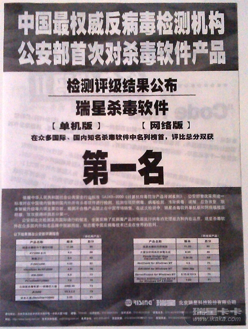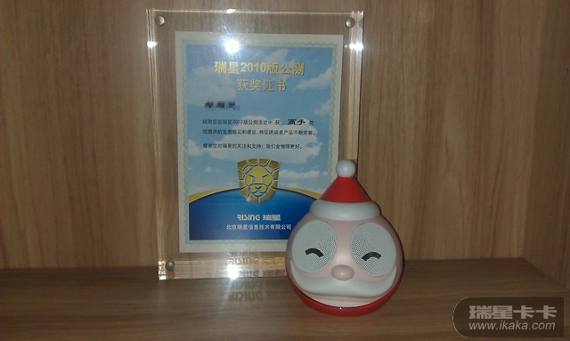 瑞星2010版测试获奖证书和瑞星2012测试的奖品