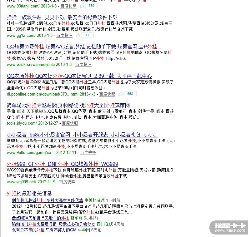 www.baidu.com,搜索引擎保护图标无显示,百度搜索"外挂"未显示防火墙保护图标,图片: