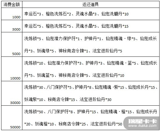 玩家若在指定系统消费满50000元宝,即可获得以上消费额度的所有奖励。