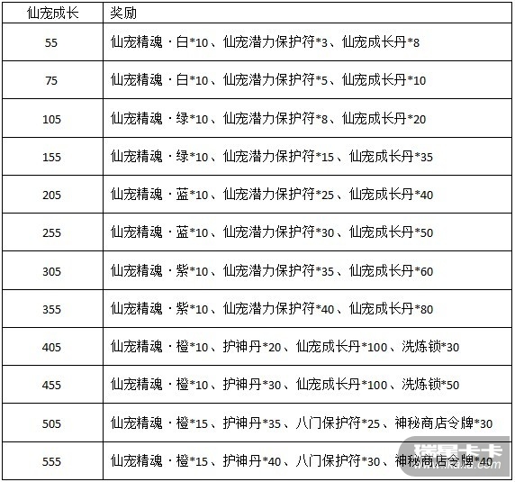 活动期间,将仙宠提升至指定成长,可获得额外系统赠礼。
