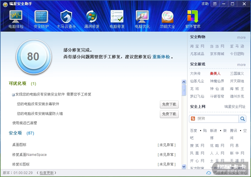 瑞星安全助手 版本号:01.00.02.29 更新日期:2013-1-9