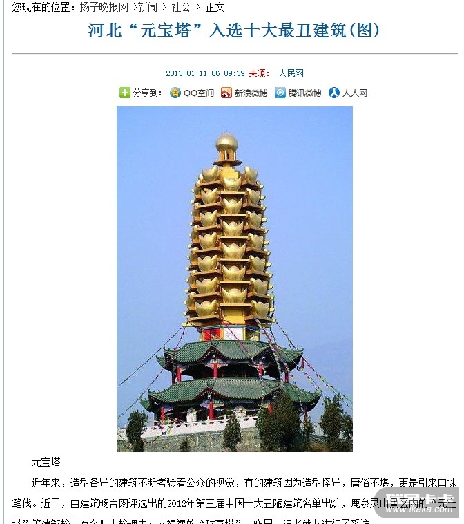 近日,有网友在微博上贴出了北京一处建筑的照片,再次挑战网友审美底线,引来大把吐槽。据悉,这座建筑名叫兴创大厦,位于北京大兴,在建时就曾被调侃像一摞盘子、呼啦圈,好不容易盖好,又得了一堆外号:排烟管、蚕蛹、京南第一扭,其中(卤煮)大肠塔被网友称“体现了中华民族悠久灿烂的食文化”。