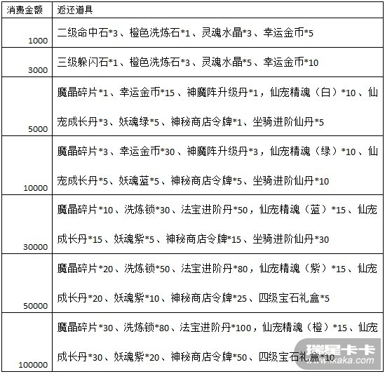 玩家若在指定系统消费满100000元宝,即可获得以上消费额度的所有奖励。