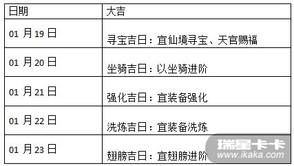 活动期间,为回馈广大仙友,每日将会有大吉运势,玩家若在当日进行相应的能力提升,将如有神助,水到渠成。